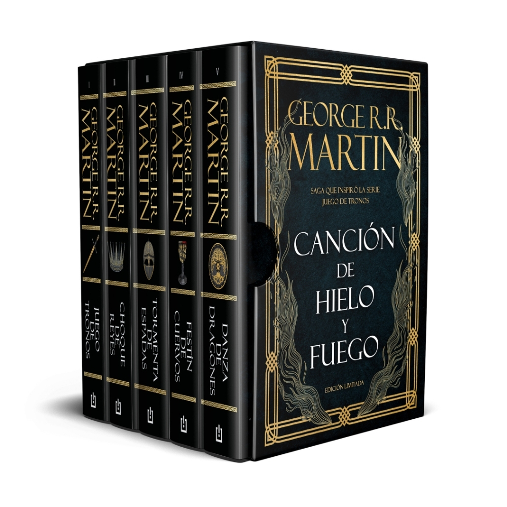 EL PACK DE CANCIÓN DE HIELO Y FUEGO REÚNE LA ACLAMADA SAGA ÉPICA DE GEORGE R. R. MARTIN EN UNA EDICIÓN DE COLECCIÓN. CON INTRIGAS POLÍTICAS, BATALLAS POR EL PODER Y PERSONAJES INOLVIDABLES, ESTA SERIE —BASE DE LA FAMOSA GAME OF THRONES— TRANSPORTA AL LECTOR A LOS SIETE REINOS, DONDE CADA ALIANZA Y TRAICIÓN PUEDE DECIDIR EL DESTINO DE UN CONTINENTE. UNA OBRA IMPRESCINDIBLE PARA AMANTES DE LA FANTASÍA ADULTA Y LA NARRATIVA COMPLEJA.